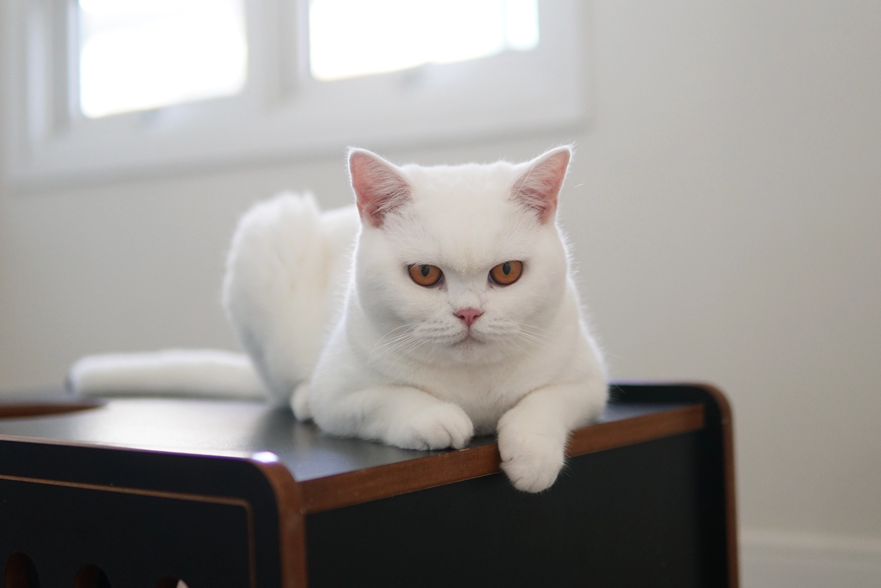 Tamica é a nossa jovem estrela, uma linda British Shorthair branca que carrega com orgulho uma das linhagens mais nobres da Europa. Filha de campeões internacionais, ela une elegância, charme e genética impecável.
